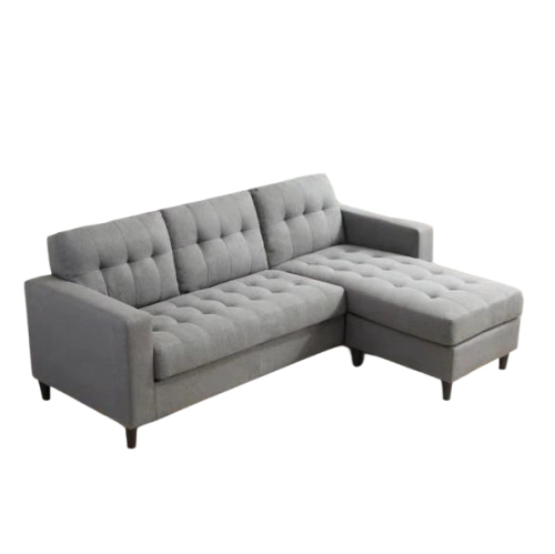The Mauritius Reversible Sectional in light grey offers a sleek, adaptable design with a reversible chaise for easy configuration, perfect for small to medium spaces. Simple assembly is required.