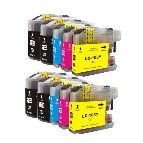 10 Ink LC103XL (4BK,2C,2M,2Y) Compatible Ink Cartridge for Brother LC-103XLCompatible with:Brother DCP-J152W,MFC-J4410DW,MFC-J4510DW,MFC-J4610DW,MFC-J4710DW, MFC-J4310DW,MFC-J285DW,MFC-J470DW,MFC-J475DW,MFC-J650DW,MFC-J870DW,MFC-J875DW,MFC-J245,MFC-J450DW,MFC-J6920DW,MFC-J6720DW,MFC-J6520DW Yield: 600/ea color