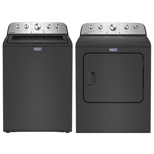 Maytag 5.4 Cu. Ft. High Efficiency Top Load Washer & Pet Pro 7.0 Cu. Ft. Gas Steam Dryer - Volcano Black