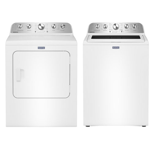 Maytag 5.5 Cu. Ft. High Efficiency Top Load Washer & Pet Pro 7.0 Cu. Ft. Gas Steam Dryer - White