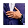 A beautiful oval shaped blue sapphire gemstone 5x7mm the birthstone for September is set in crisp polished sterling silver while 14 sparkling accent whit topaz complete the look. The mens sapphire ring is simple elegance.