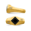 This mens ring features a bezel set square 7mm bold black onyx on the top supported by tiny sparkling accent diamonds along the side in a 14 karat yellow polished gold finish.