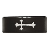This stylish 9mm wedding band ring is beautifully crafted in black IP plated stainless steel and glimmers with a brushed finish and simple cross at its center.