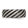 Sleek and stylish, this 8.00mm band ring is crafted in durable strong black titanium and brushed grooved zebra design. Mark your special day in style with this ring thats as unique as you are. This titanuim mens ring weighs 4.05 grams.