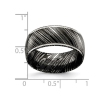 Sleek and stylish, this 10mm band ring is crafted in durable strong black titanium and brushed grooved zebra design. Mark your special day in style with this ring thats as unique as you are. This titanium mens ring weighs 7.09 grams.