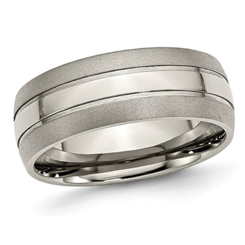 Mens Chisel 8mm Titanium Grooved Brushed Wedding Band Ring