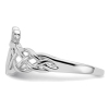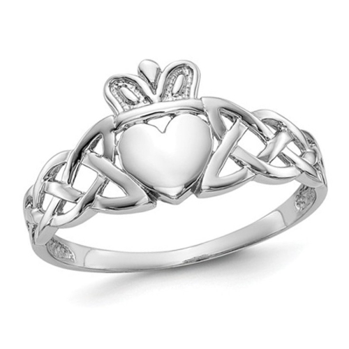 This mens 14 karat white gold ring features the Claddagh: a traditional Irish symbol of love, friendship and loyalty. A classic and masculine piece, this ring will make a thoughtful token of your affection for him.