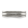 Polished Stainless steel awith a grooved and beaded motif create pure fashion ecstasy in this fabulous wedding band ring that will great on her or his or any finger. This steel 6mmm thick band weighs 6.15 grams.