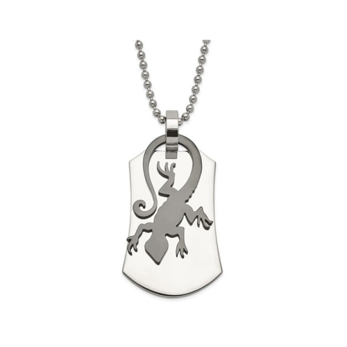 Mens Stainless Steel Lizard Dogtag Pendant Necklace with Chain (24 Inches)