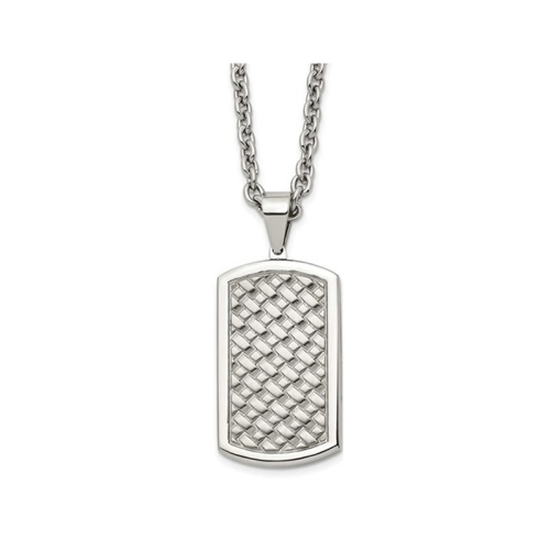 Mens Stainless Steel Weaved Pattern Dog Tag Pendant Necklace with Chain