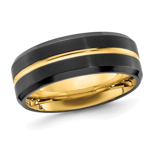 Mens Stainless Steel with Black and Yellow Plating Band Ring (8.00mm)