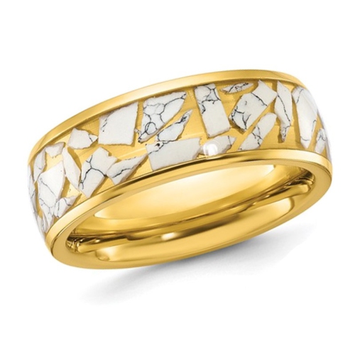 Mens Stainless Steel Yellow Plated Ceramic Fragments Inlay Band Ring (8mm)