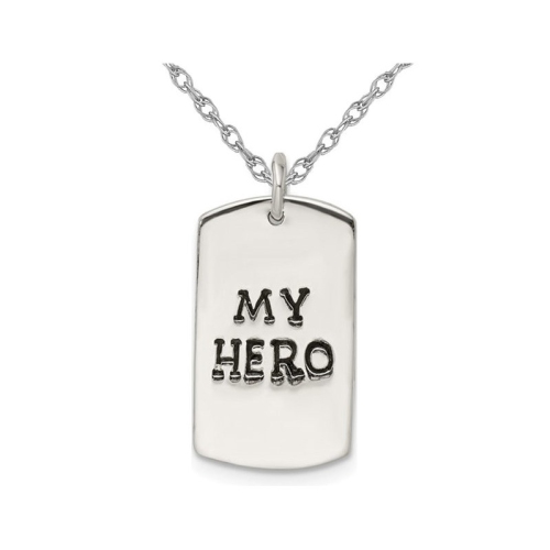 Mens Sterling Silver DogTag My Hero Pendant Necklace with Chain