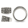 This black 14mm band ring has very unique look and incorporates a brushed and polished flat design . A very fashion forward mens ring he will be proud to show off. This 14mm wide titanium ring weighs 5.35 grams.