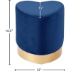 Show your room a little love with this heart-shaped ottoman/stool. The beautiful navy-colored upholstery covering the top and sides of this ottoman is sumptuous to the feel, ensuring its luxurious look from all angles. The goldtone base complements the navy of the stool, adding a distinct contrast to the presentation. The velvet material is rich and sleek, so it pampers your feet while you prop them up at day's end.Features : Upholstery Materia...