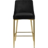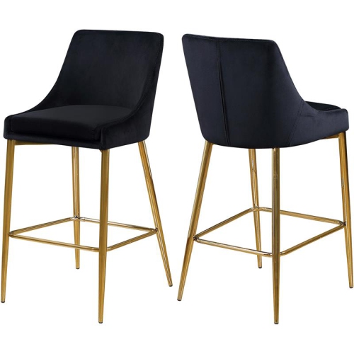 Yield to your contemporary side with this KarinaVelvet Stool in Black. This modern stool is counter height, making it an ideal addition to a home bar or eat-in kitchen counter. The black velvet upholstery brings a neutral element to your room, so it can easily meld with other furnishings. Plump seat and back cushions ensure that guests sit comfortably, whether they're enjoying a sudsy brew or a stack of pancakes. The polished gold metal frame is sturdy and stout, addin...