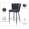 Fall fast and hard for the beautiful look of this Lily Bar Stool from Meridian Furniture. This lovely stool features a striking grey velvet fan-style back with deep tufting that helps the padding inside stay full and aloft for added comfort. The cushioned seat and back are upholstered to the hilt for maximum luxury and beauty. Black metal legs with a matte finish and gold tips add contemporary appeal to this handsome stool whether used at the bar or kitchen counter.</p...
