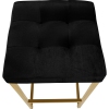 Give your home bar or kitchen counter a fast update with this Nicola Black Velvet Counter Stool. A glitzy gold-finished base made from steel gives ample support and resilient strength to this stool's design, ensuring it lasts and lasts in your busy home. Rich black velvet upholstery covers the plump seat cushion, ensuring comfort till 'closing time,' and tufting on the seat keeps the thick cushion inside aloft while adding to its elegant modern demeanor. A foot rail on...