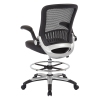 Mesh Black Back Fabric Drafting Chair Faux Leather Seat Adjustable Foot RingElevate your work experience with this deluxe drafting chair designed for comfort. A breathable mesh back with built-in lumbar support and thick padded seat cradles your body throughout the workday letting you keep your focus and stay productive. Enjoy an ample seat height adjustment area to find just the right zone for your needs along with an adjustable foot ring to keep your footing while ...