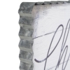 Canvas wall art with a metal frame. Designed to look like whitewash wood planks. Choose to see the good inspirational message