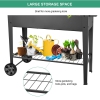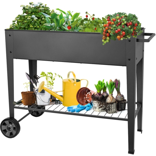 Metal Raised Mobile Garden Bed, 39"L x 15" W x 35"H Outdoor Elevated Planter Box with Wheels and Storage Shelf for Outdoor Growing