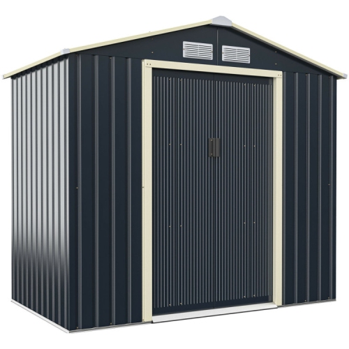 Securely store your tools, equipment, or outdoor essentials with this metal storage shed featuring sliding double lockable doors. The durable metal construction provides long-lasting protection against weather and wear, while the sliding doors allow easy access without taking up extra space. Ideal for gardens, patios, or backyards, this shed keeps your items organized, safe, and accessible, combining functionality and security in a compact design.