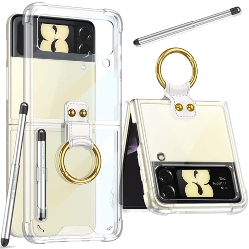 Miimall Compatible with Samsung Z Flip 3 Case with S Pen, Galaxy Z Flip 3 Case with Ring Stand, Transparent TPU Slim Cover A