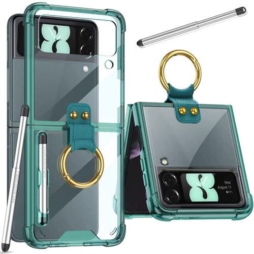 Miimall Compatible with Samsung Z Flip 3 Case with S Pen, Galaxy Z Flip 3 Clear Case with Ring Stand, Transparent TPU Slim C