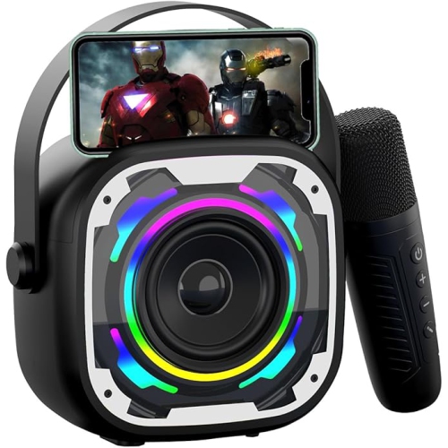 Mini Karaoke Machine for Kids Adults, Portable Bluetooth Speaker with Wireless Karaoke Microphone, Singing Machine Christmas Toys Birthday Gifts for Girls Boys Ages 3 to 12+ Black