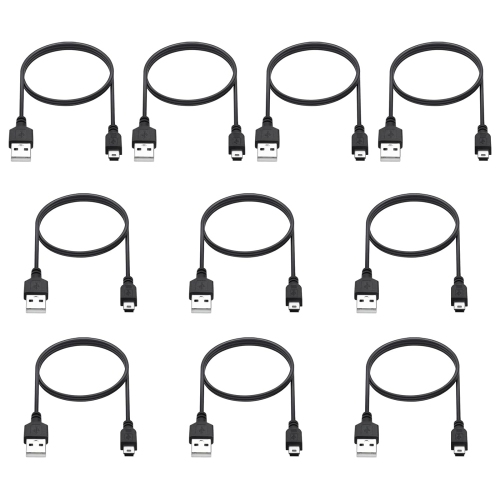 Mini USB Cable 3ft 10-Pack Bulk, Mini-B Charger Cord Black