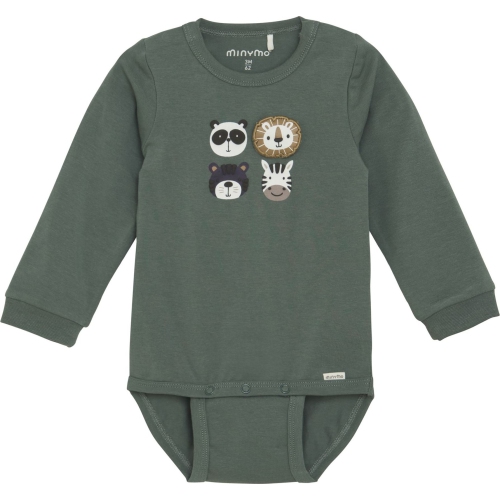 Long-sleeved bodysuit with cute print from Minymo. The body is made of a soft cotton blend that feels comfortable against the skin. The body closes with snaps between the legs, which are located in two different places, so that the body can grow with the baby. Minymo logo at the leg.