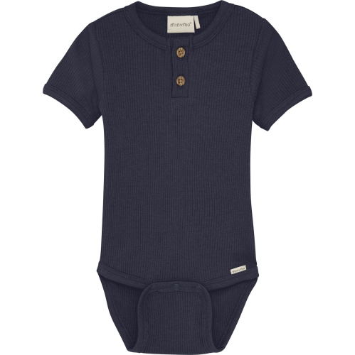 Minymo Ribbed Short-Sleeve TENCEL Modal Bodysuit - Blue Nights (3 Months)