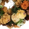 Spring mixed floral mini artificial wreath. Comes with beige and peach wood flowers. No assembly required; comes ready to hang