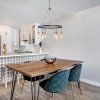 The wagon wheel chandelier brims with modern farmhouse flair. A painted black finish combined with golden downlight bulbs design two tones of premium light fixture finishes the perfect match with this unique wagon wheel design. The round minimal design makes it a unique dining room, living room, foyer, or kitchen island chandelier option.