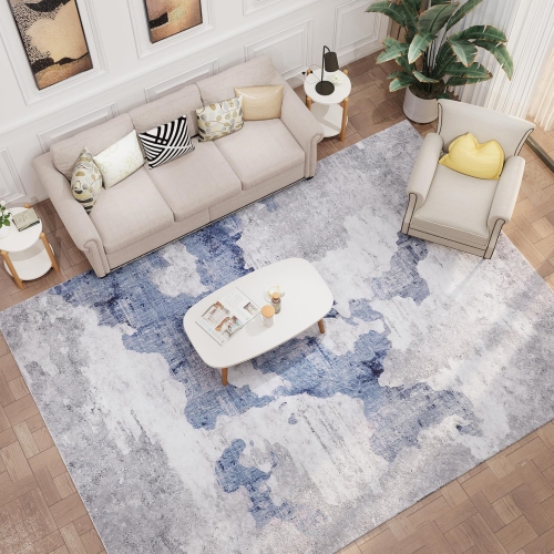 Modern Abstract Area Rug - 8' x 10' Area Rug Carpet, Non-Slip Non-Shedding Washable Rugs for Living Room and Bedroom, Blue