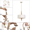 The Champagne Gold Farmhouse Drum Chandelier by Uolfin walks into your warm home, and its modern design perfectly fits with it. The light passing through the fabric cover appears softer and warmer. The arrival of this modern chandelier not only illuminates the room but also becomes a beautiful decoration.