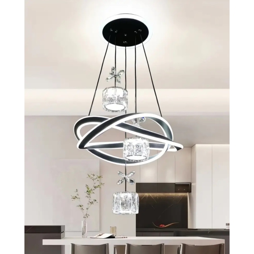 Modern Minimalist LED Chandelier – Acrylic Lampshade, Tri-Color Dimmable Ceiling Light, White/Black, for Bedroom, Living Room, Kitchen not include a wall switch or remote control