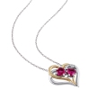 Modern Sterling Silver Chain and Sterling Silver Heart Pendant with Red Ruby & 0.02ctw Diamonds