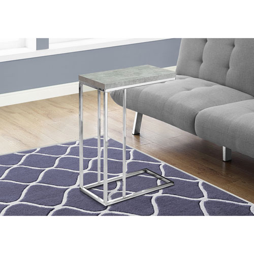 Keep your living room essentials close at hand with this Monarch modern rectangular C-shaped end table. Built with a chrome metal base and a grey cement-look top, it makes a beautiful place to display decorative items or a lamp. The base also slides right under your couch or chair so it's perfect for setting down a drink or snack.