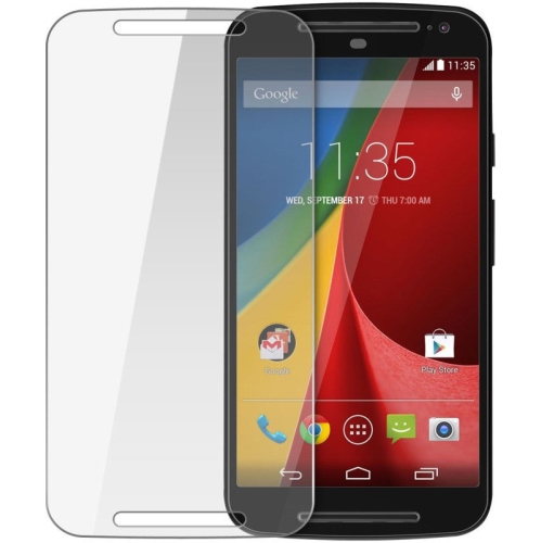 Screen protector for Motorola Moto G2. DURABILITYThe screen protector is made with real tempered glass composed of 3 layers for efficient dispersion of force. This allows the screen protector to withstand shocks, scratches and impacts, valuing the surface hardness of the screen...