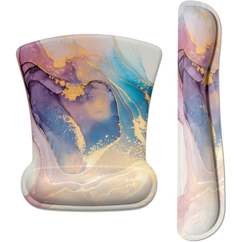 (Original Design)Handpicked pattern are more attractive. This mouse pad is carefully printed with brilliant color, no fade, no wrinkle. Wrist support mouse pad: 9.85 x 7.87 x 0.85 inches & 7.0oz, Keyboard wrist support: 16.9 x 3.54 x 0.85 inches & 4.9oz. Excellent texture. (Ergonomic Design)The soft slow rebsound memory foam-filled cushion keeps hand in natural position, providing maximum comfort for office or home use. It reduces wrist irritation and wrist pain. Designed to help reduce pressure for maximum comfort and long time use. (Ultra-smooth Surface) Texture is denser with 230°F and high