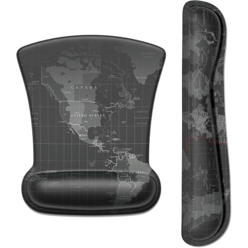 Mouse Pad Wrist Support Keyboard Wrist Rest Pad Ergonomic Mousepad, Non-Slip Memory Foam Pain Relief for PC Laptop Gaming Office, Map
