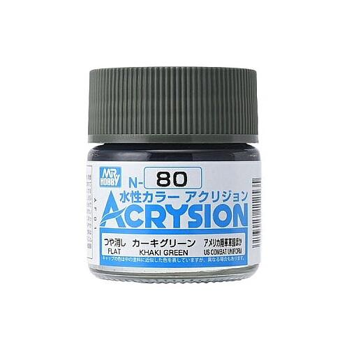 Mr. Hobby Acrysion Color - Khaki Green (Flat/US Combat Uniform) (N80) 10ml Flat Acrylic Paint