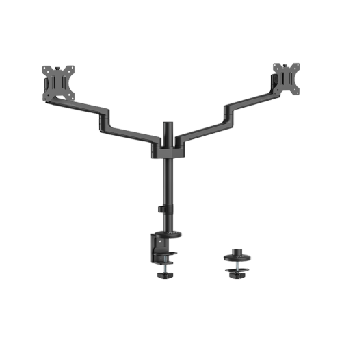 MSI PRO MT81D - Premium Aluminum Dual Monitor Stand Arms, Supports 17-32" & 17.6 lbs per Screen, VESA Compatible, Adjustable Desk Mount, Clamp & Grommet Base, Quick Release Plate - Black