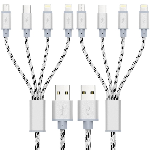 Multi Charging Cable 2Pack 1Ft Short Multi Charging Cord Braided 4 in 1 Multiple USB Cable Charger Cable with Lightning/Type C/Micro USB Port for Cell Phone, iPhone, Galaxy, PS, Tablets & More