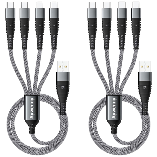 Multi Charging Cable 2Pack 4FT Nylon Braided Universal 4 in 1 Multiple USB Cable 3A,with 4 USB-C Port
