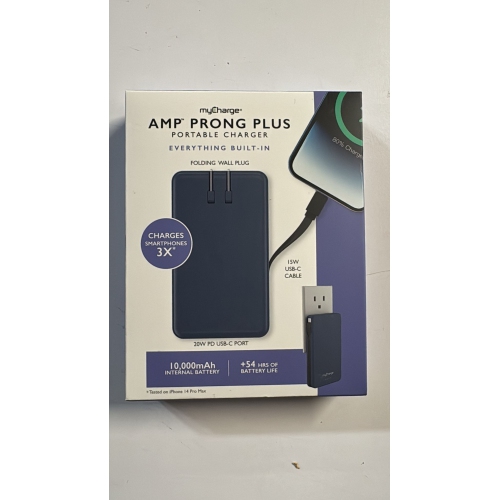 MyCharge AMP PRONG Plus 20W PD USB-C Portable Charger with Built-In Plug and Cable