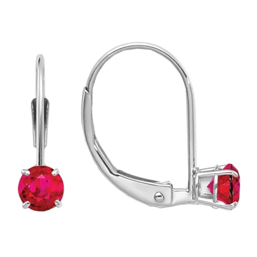 Natural Red Ruby 3/4 Carat (ctw) Leverback Earrings in 14K White Gold