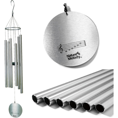 Nature's Melody Aureole Tunes Wind Chimes - 6-Tube, E Pentatonic Scale - 36" - Silver
