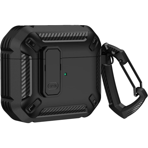 navor Cover Compatible with AirPods 3rd Generation (2021), PC + TPU Protective Case with Hook Compatible for AirPods 3, Front LED Visible -Black
